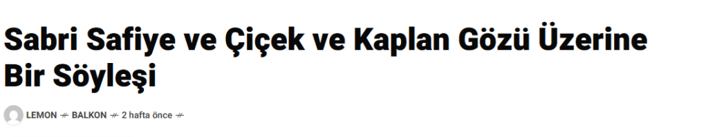 Sabri Safiye ve Çiçek ve Kaplan Gözü Üzerine Bir Söyleşi