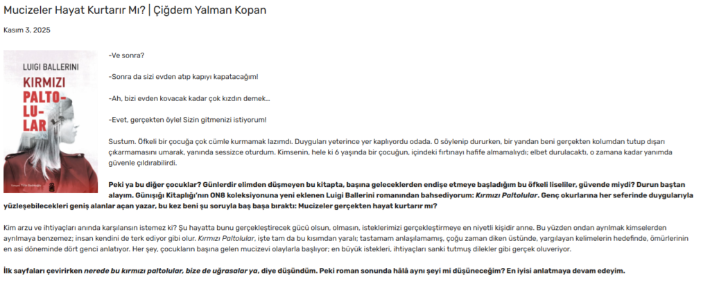 Basından Haberler Mucizeler Hayat Kurtarır Mı? Çiğdem Yalman Kopan, Edebiyat Haber, 03.11.2025 Haberi okumak için görselin üzerine tıklayınız. Paylaş Tweet et