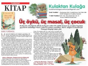 Basından Haberler Üç Öykü, Üç Masal, Üç Çocuk Emek Yurdakul, Cumhuriyet Kitap, 10 Kasım 2022 Paylaş Tweet et