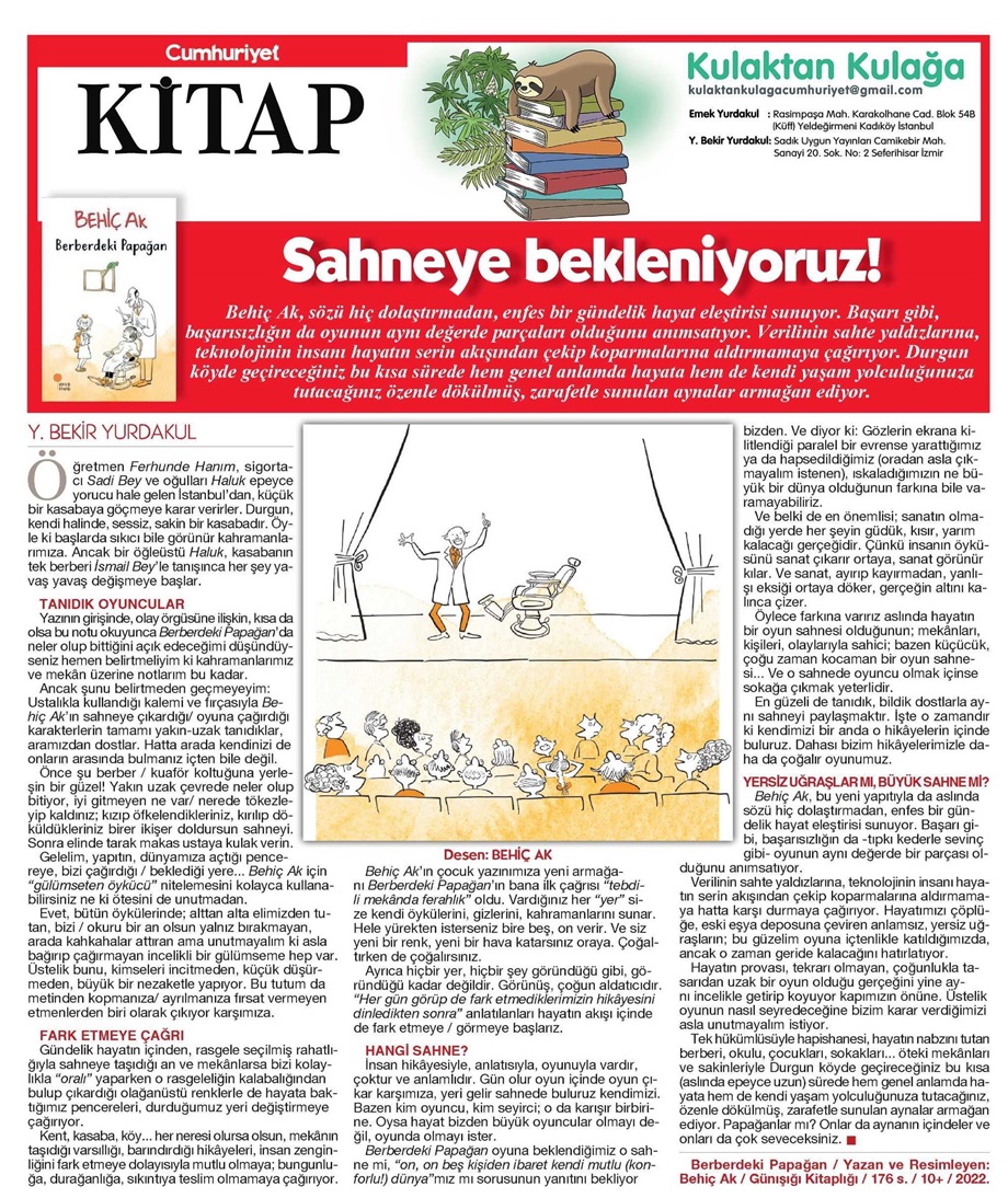 Basından Haberler Sahneye Bekleniyoruz! Y. Bekir Yurdakul, Cumhuriyet Kitap, 19 Ocak 2023 Paylaş Tweet et