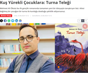 Basından Haberler Kuş Yürekli Çocuklara: Turna Teleği Çiğdem Yalman Kopan, BirGün, 23.08.2024 Haberi okumak için görselin üzerine tıklayınız. Paylaş Tweet et