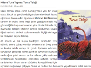 Basından Haberler Hüzne Yuva Yapmış Turna Teleği A.Erkan Akay, Kitap Haber, 24.07.2024 Haberi okumak için görselin üzerine tıklayınız. Paylaş Tweet et