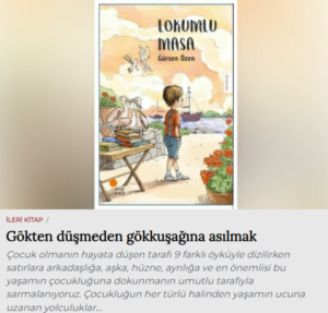 Basından Haberler Gökten Düşmeden Gökkuşağına Asılmak Umut Dağlar, İleri Kitap, 26.12.2020 Haberi okumak için görselin üzerine tıklayınız. Paylaş Tweet et