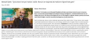Behçet Çelik: “Çocukların birçok hakları vardır. Bunun en başında da haklarını öğrenmek gelir.”
