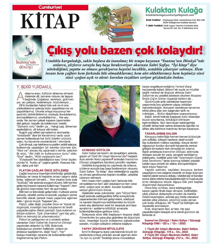 Basından Haberler Çıkış yolu bazen çok kolaydır! Yunus Bekir Yurdakul, Cumhuriyet Kitap, 31 Ağustos 2023 Paylaş Tweet et